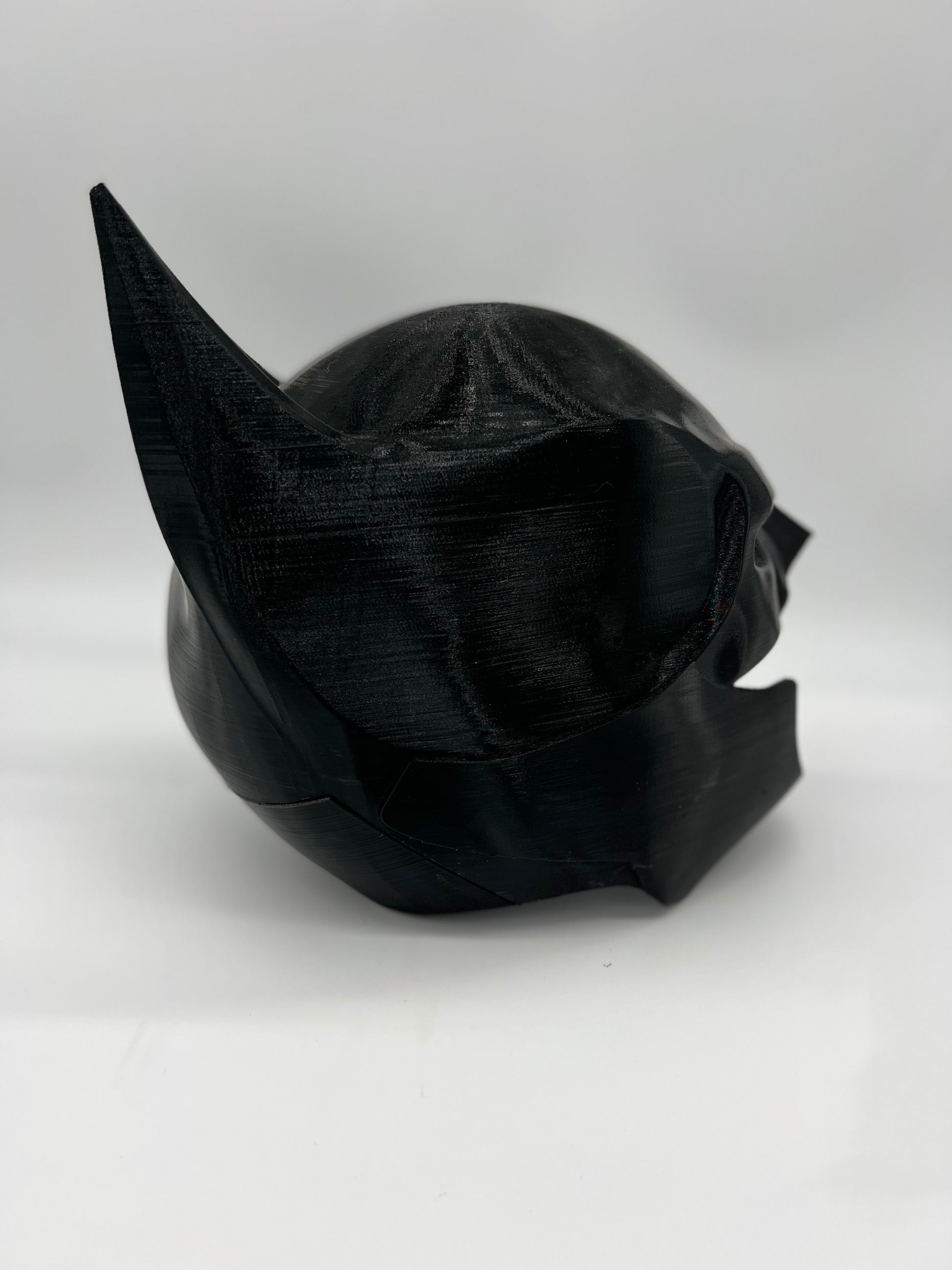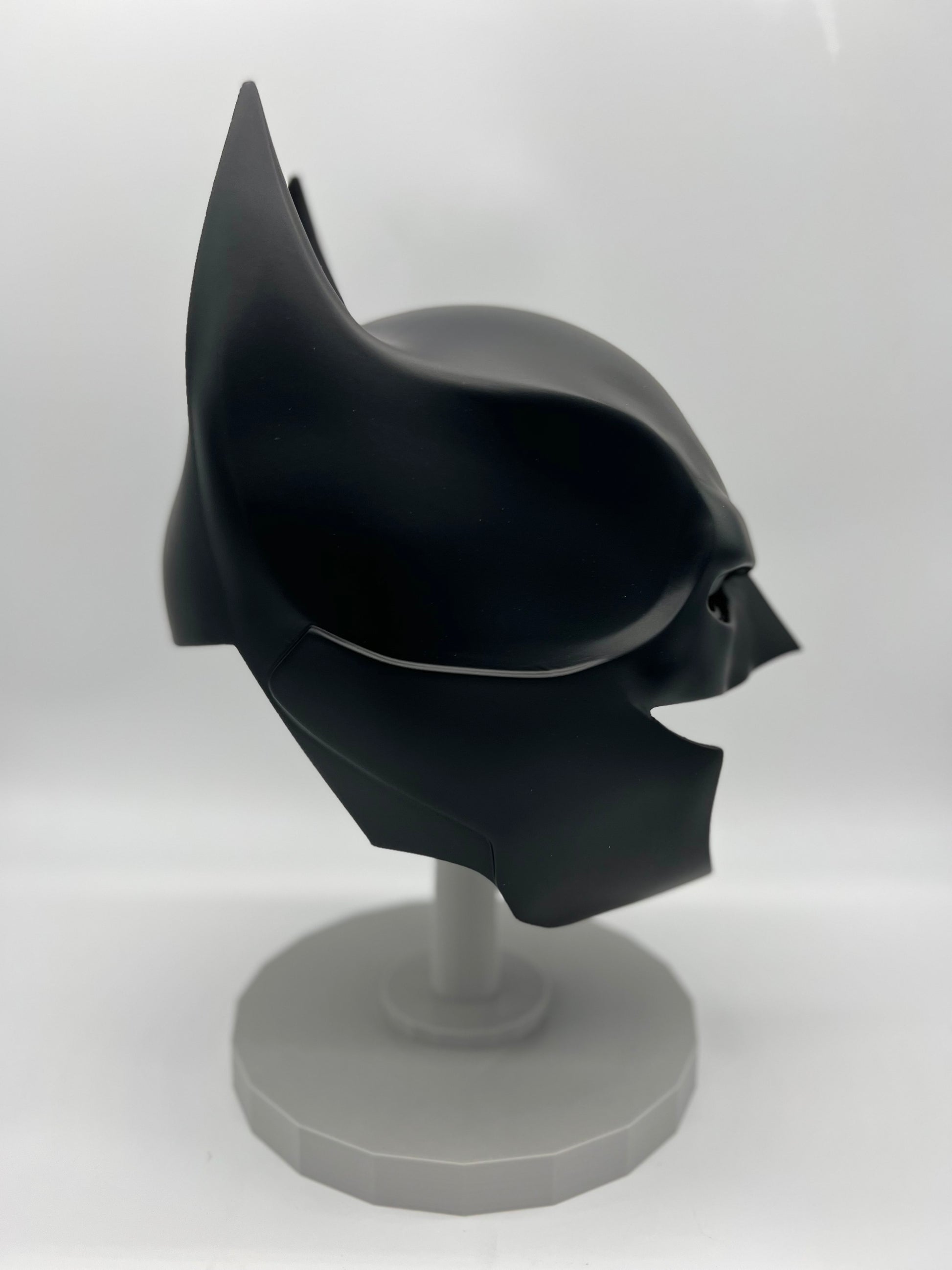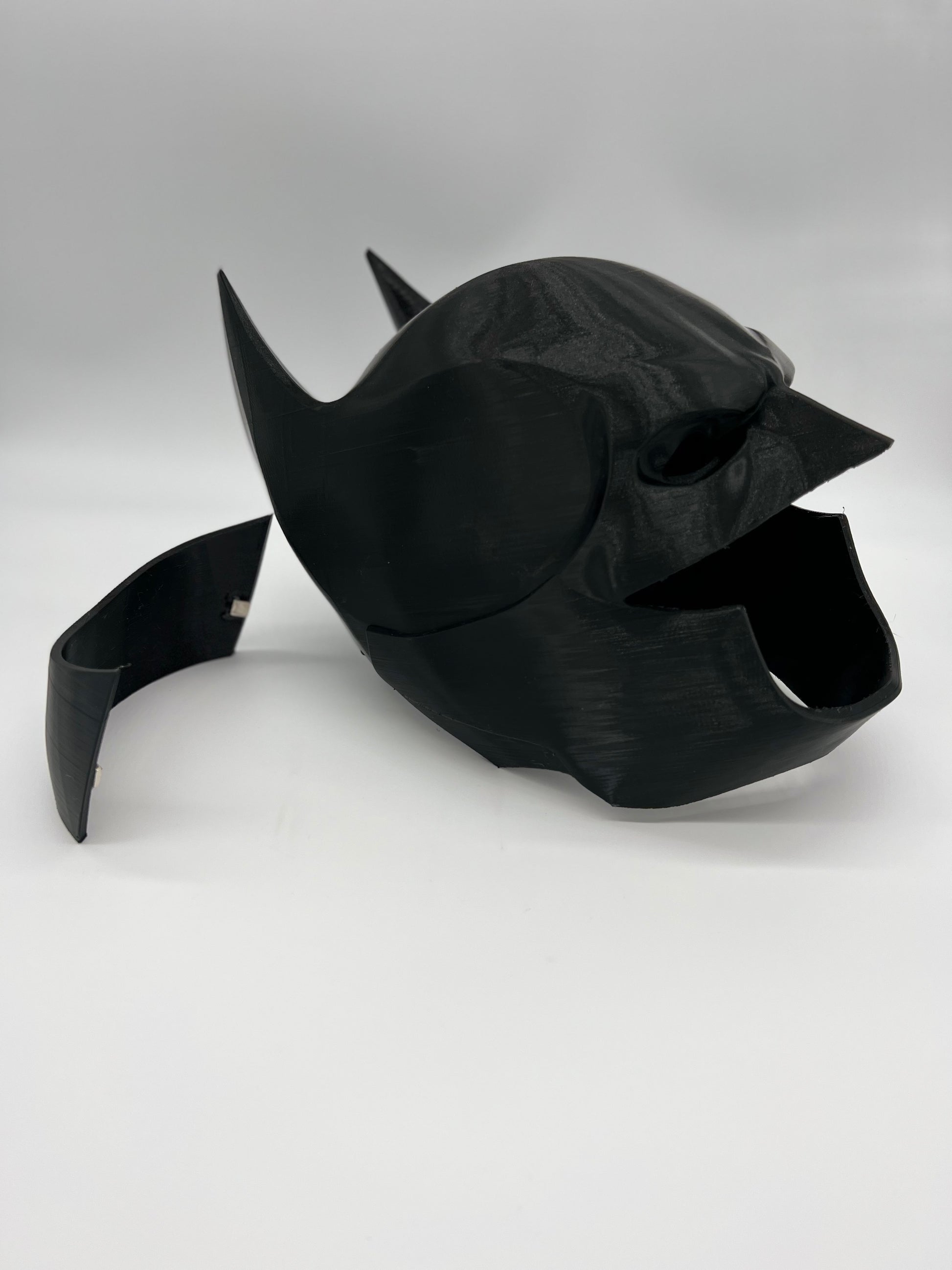 This is a wearable Batman Arkham helmet designed by Nikko Industries. For proper fitment this is printed in two pieces and will come with magnets pre installed.
