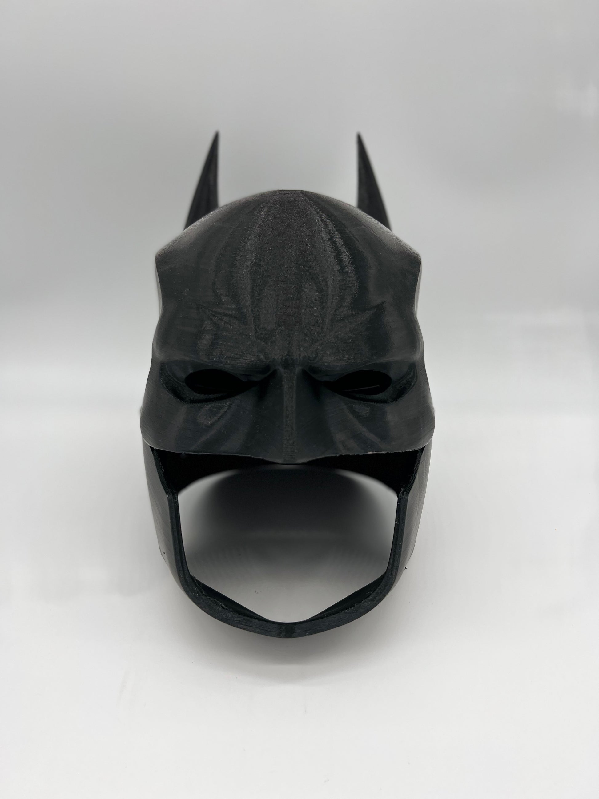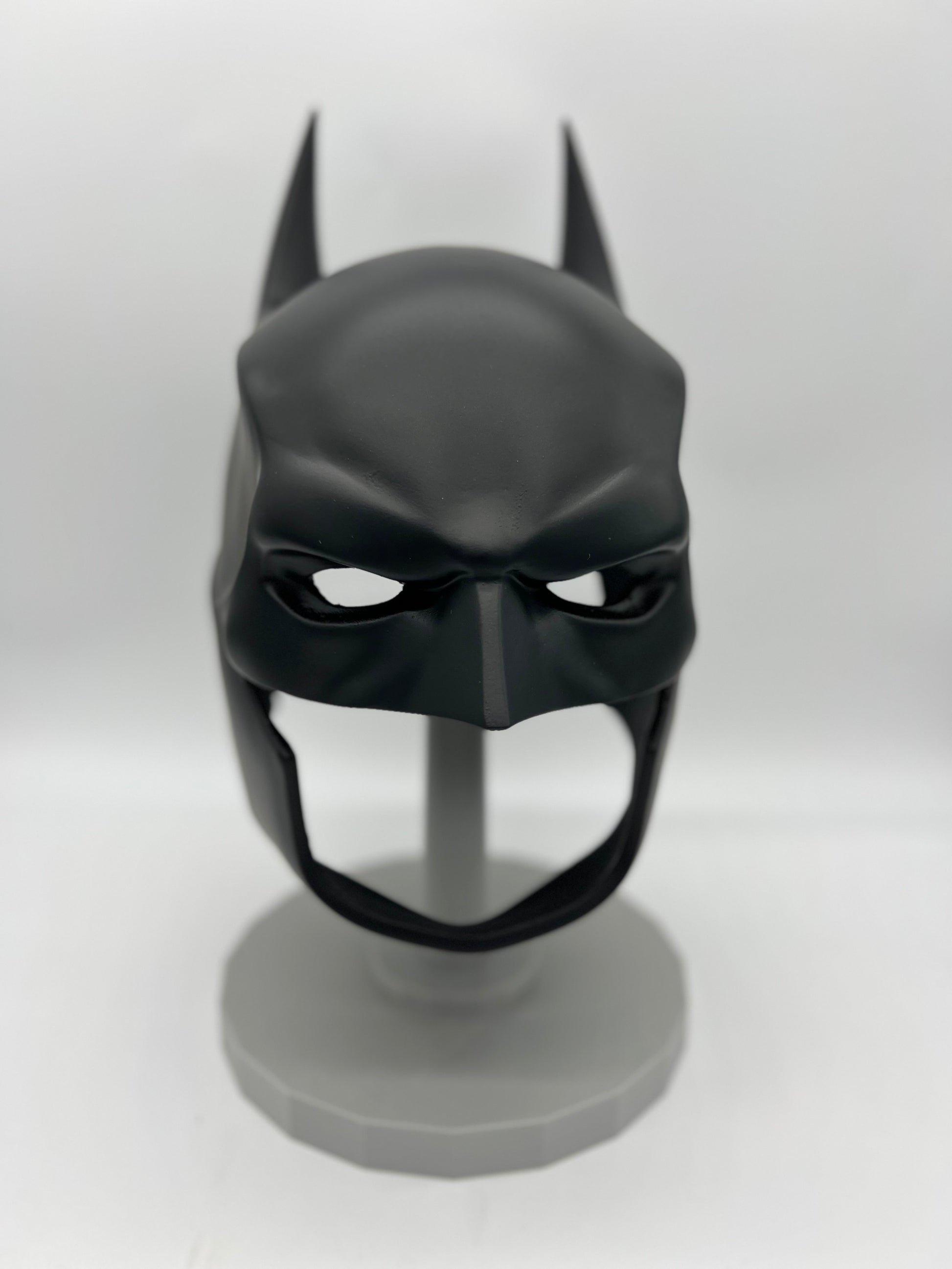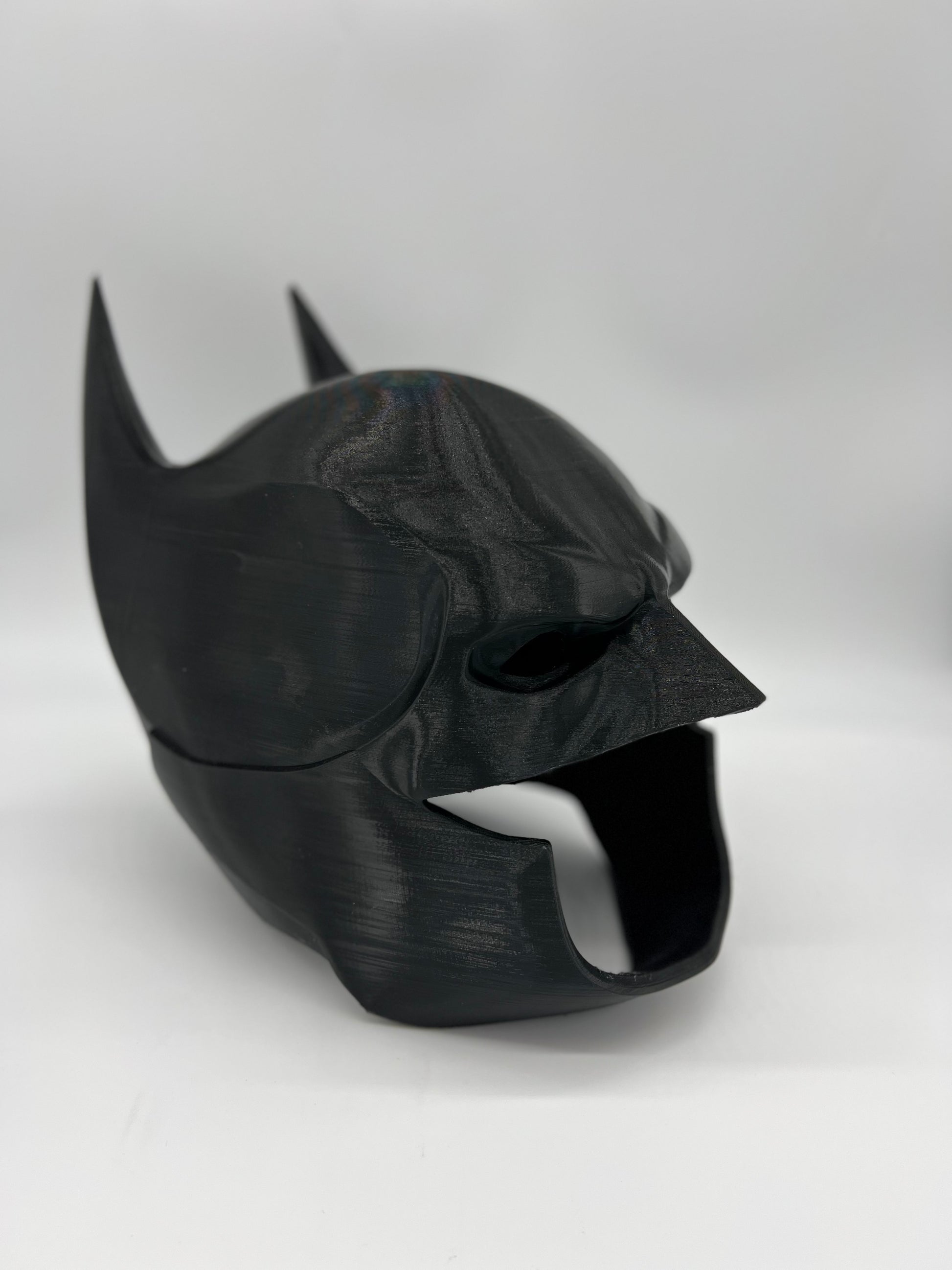 This is a wearable Batman Arkham helmet designed by Nikko Industries. For proper fitment this is printed in two pieces and will come with magnets pre installed.
